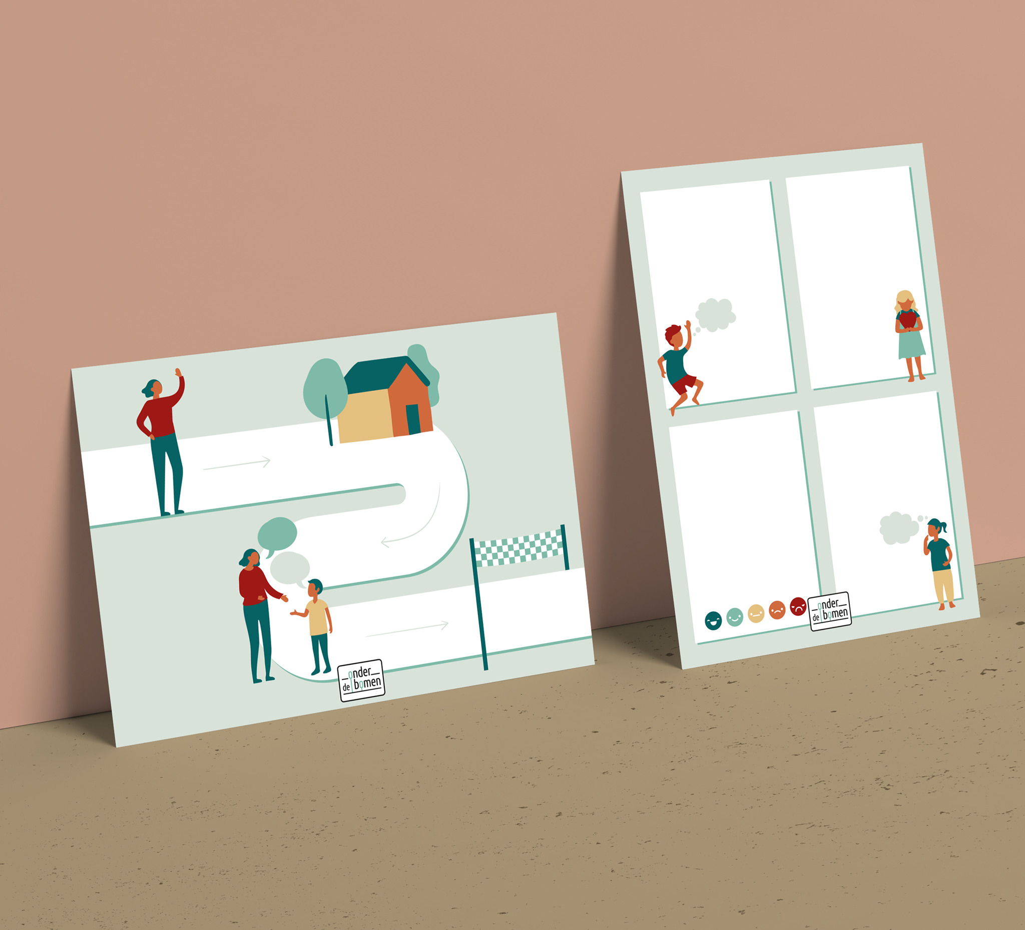Deze kaarten kunnen worden gebruikt in gesprek tussen hulpverleners en kinderen om de kinderen te betrekken in het proces.